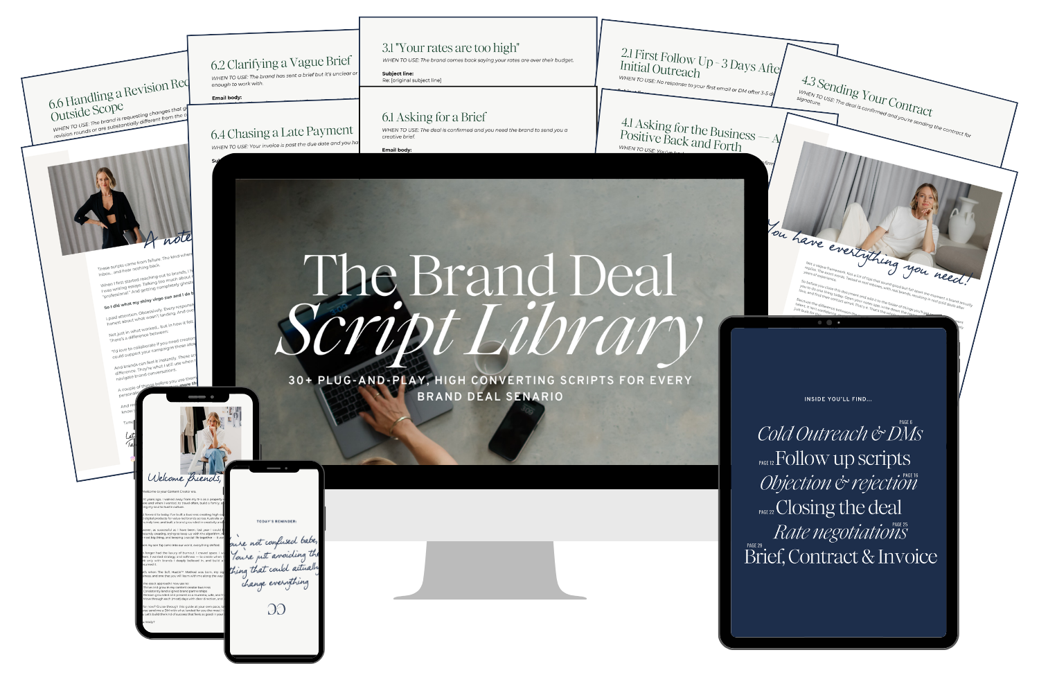 30+ plug-and-play scripts for every brand deal scenario — so you always know exactly what to say.
